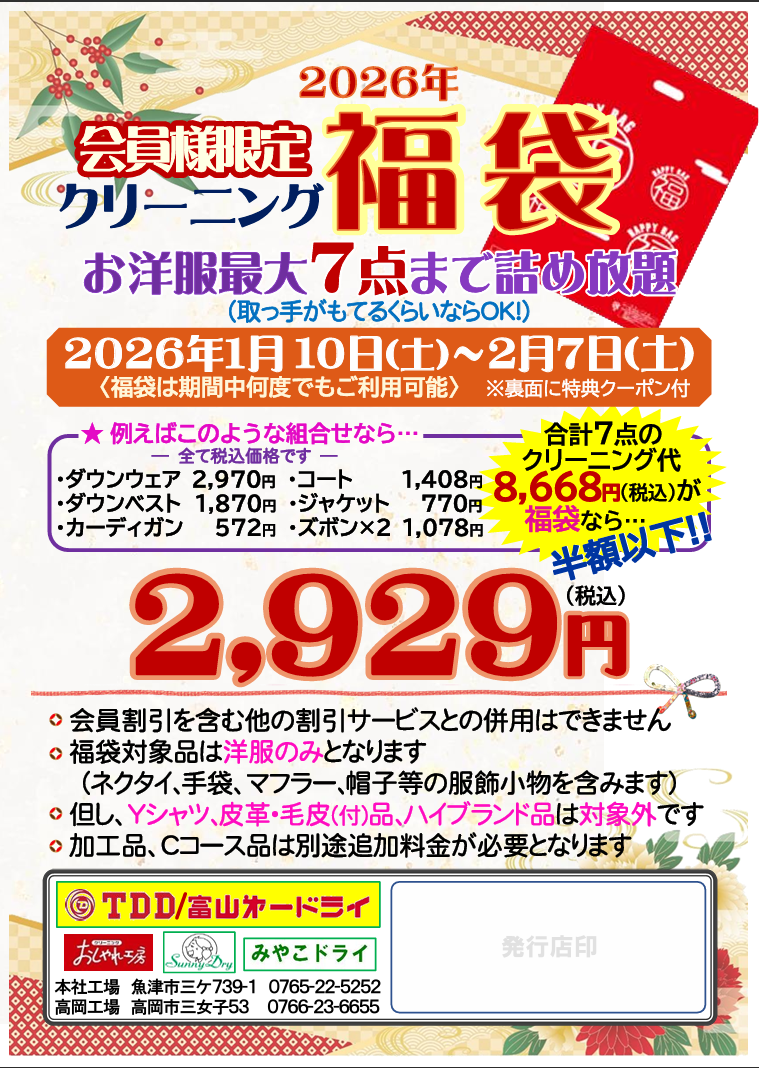 昨年末に店頭にてお配りした「会員様限定クリーニング福袋」