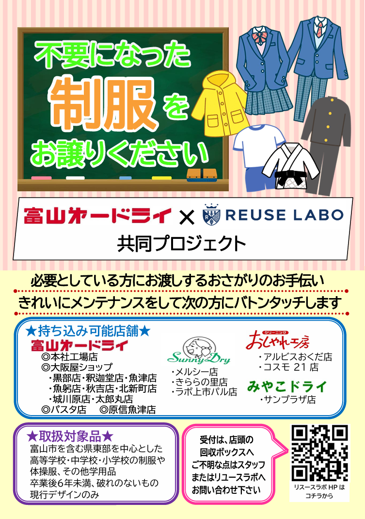 富山第一ドライグループでは、滑川市にある「リユース・ラボ」様と連携して