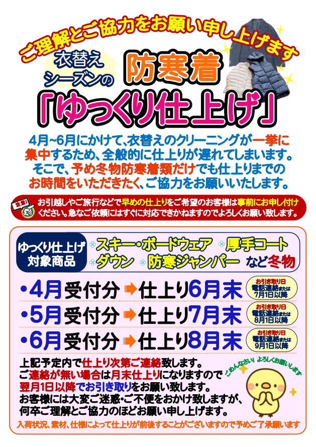 「ゆっくり仕上げ」のご協力をお願いいたします。