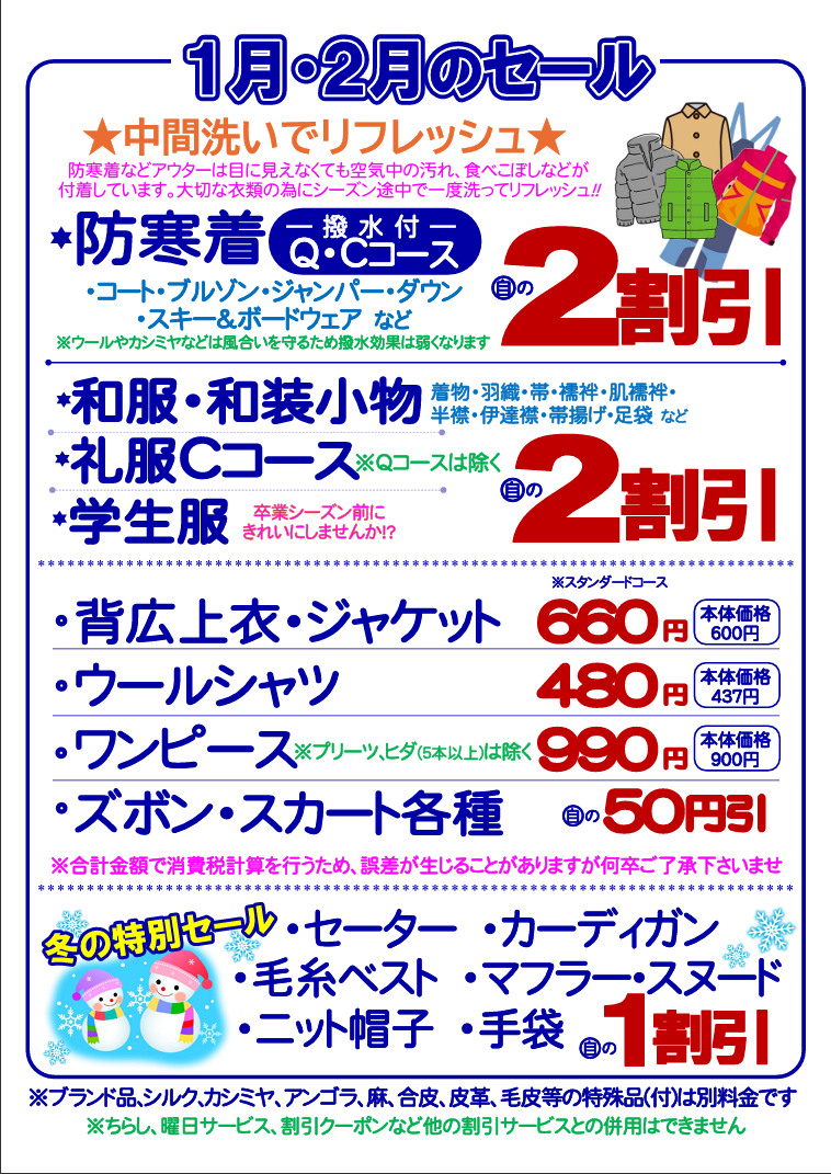 今年も感謝の気持ちを込めて「新春初売り」としてクリーニング3割引セールを実施します